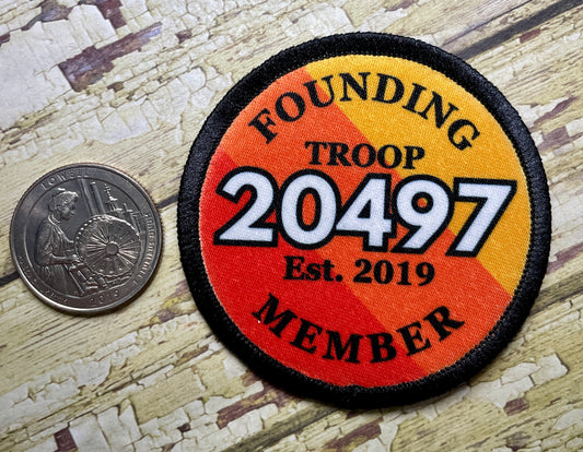 Customizable Founding Member Patch | Personalized Troop Badge | 2.57" Polyester Iron-On | Scout Leader Pride | Unique Troop Number & Year