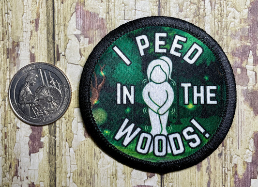 I Peed in the Woods! Iron-On Patch | 2.57" | Pee Pee Dance Girl Design | Fun Patch