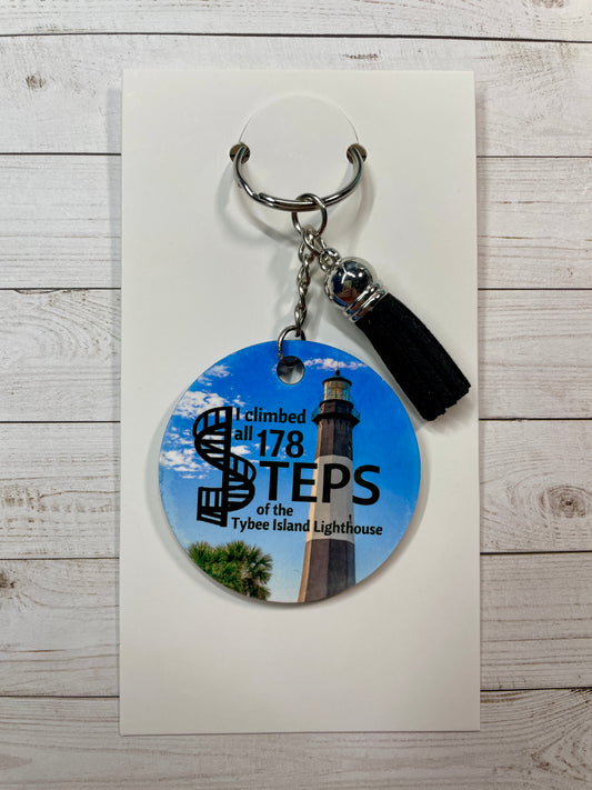 Tybee Island Lighthouse Souvenir Keychain with tassel - I climbed all 178 steps of the Tybee Island Lighthouse